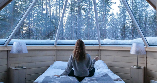 Northern Lights Village is located 17km from Levi and offers a magical way to experience the wintry star-filled sky. With a laser heated glass roof located directly above the king size bed, you'll have a perfect view of the night sky and the opportunity to spot the Northern Lights!